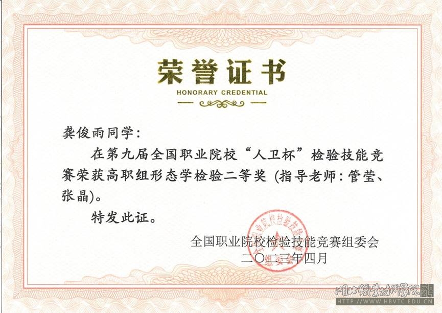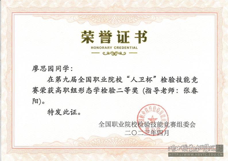 (本网讯 张晶)3月30日至4月1日,第九届全国职业院校“人卫杯”检验技能竞赛在江苏淮安举行,我校选派了医学院医学检验技术专业龚俊雨、廖思园、靳芸3名学生参赛。经过紧张、激烈的角逐,最终荣获两个二等奖、一个三等奖。