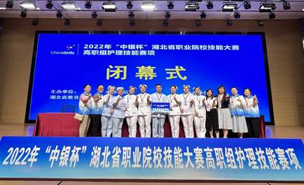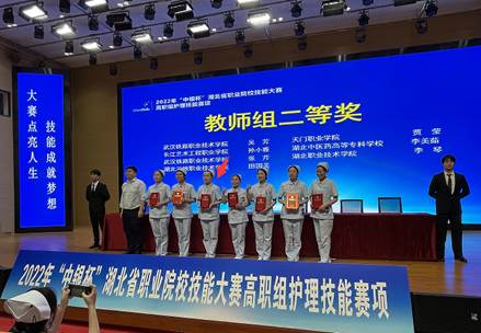 (本网讯 李琴 张玉洁)5月12至14日,2022年“中银杯”湖北省职业院校技能大赛高职组“护理技能”赛项在武汉举行,来自全省21所高职院校的160名师生,分为推荐组、抽测组和教师组参加了比赛。经过三天一夜的激烈角逐,护理学院参赛队6名学生、2名指导教师全部获奖,推荐组选手汤心雨、徐顺朝、吴静分别荣获一、二、三等奖;抽测组选手沙尼亚∙肉扎洪、方悦荣获二等奖,刘颖荣获三等奖;指导教师李琴荣获“优秀指导教师”和教师组二等奖,鲁婕音老师荣获教师组三等奖。