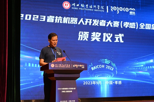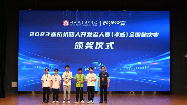 (本网讯 陈灏 邹雪萍 龚洪浪 黄文军 肖俊春 沈平 熊元焕 周洪 龚恒)经过一天激烈角逐,参赛队伍展示了在机器人的设计、组装、编程、操作等各个方面的娴熟技能,展现出极高的专业素养和敬业精神,用熟练的技巧和独特的思维,成功地挑战了各项任务,也赢得了在场观众的阵阵掌声。9月16日晚,2023睿抗机器人开发者大赛(RAICOM)(孝感)全国总决赛颁奖典礼我校南校区崇德礼堂举行。