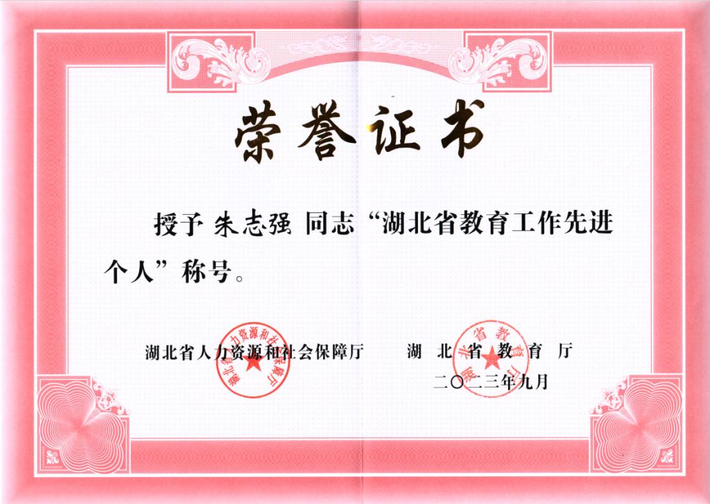 (本网讯 周伟)日前,湖北省人社厅、教育厅联合发布《关于表彰2023年湖北省教育工作先进集体和先进个人的决定》,我校机电工程学院副院长、副教授朱志强荣获“湖北省教育工作先进个人”称号。